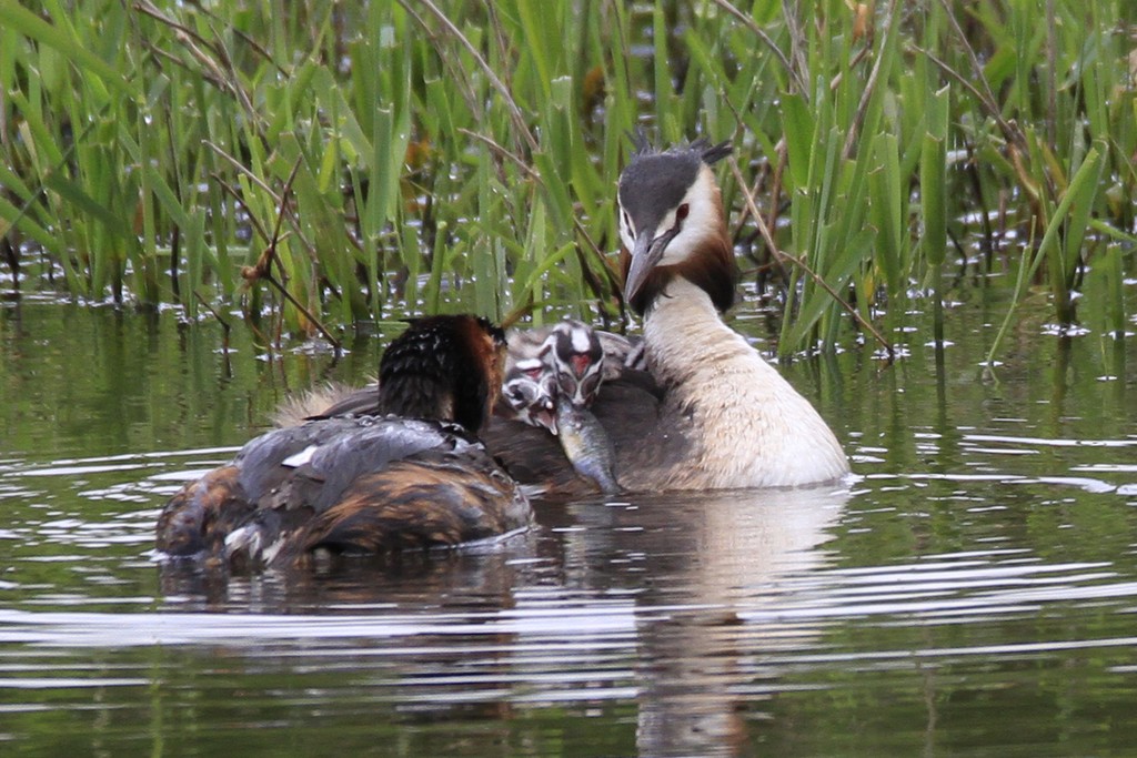 Nourrissage jeunes grèbes